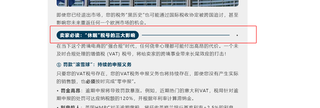 VAT号风险(加粗):连续逾期或长期不申报可能导致VAT号被列入高风险名单,后续申报和退税将受到严格审核,退税周期可能延长,税务机关可能要求提供额(下划线)外材料。